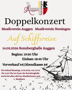 Schülerinnen und Schüler der Musikschule sind am Jahreskonzert des Musikverein Auggen zu Gast und musizieren gemeinsam das Musikstück „A Foggy Island“ von Patrick Egge.