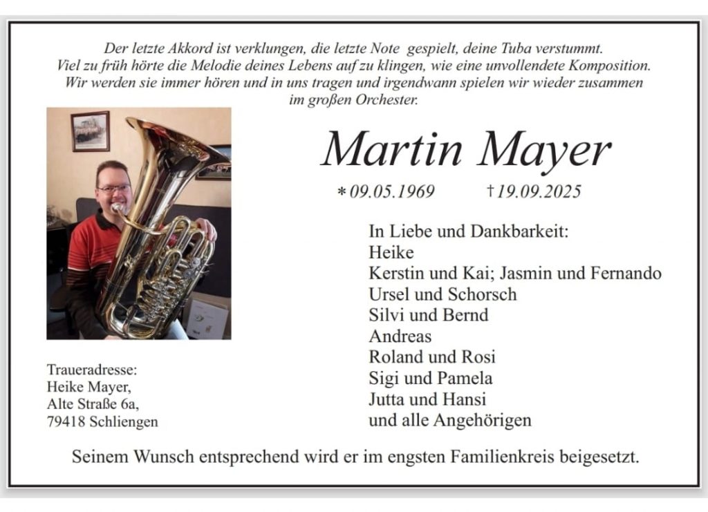 Unser tiefstes Mitgefühl gilt allen Hinterbliebenen, welche Martin Mayer viel zu früh verlieren mussten.