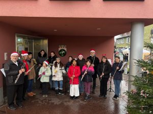 Das Querflötenensemble spielte am Wochenende in Neuenburg auf dem Weihnachtsmarkt.